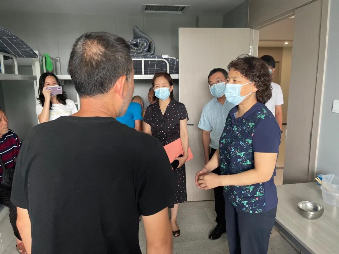 隨后,田維琳主任一行進(jìn)入宿舍對(duì)受災(zāi)民眾進(jìn)行了慰問,一位老奶奶拉著田主任的手哽噎的說道:“感謝中國(guó)共產(chǎn)黨、感謝政府的關(guān)心、感謝胡總,我們?cè)谶@吃的好、睡的舒服,還能洗澡、洗衣,真是太感謝你們了!” 田主任聽完說道:“現(xiàn)在這都是你們的家,政府就是你們最堅(jiān)強(qiáng)的后盾。有困難找政府,讓我們共同攜手,共度難關(guān)!現(xiàn)場(chǎng)一片掌聲響起。