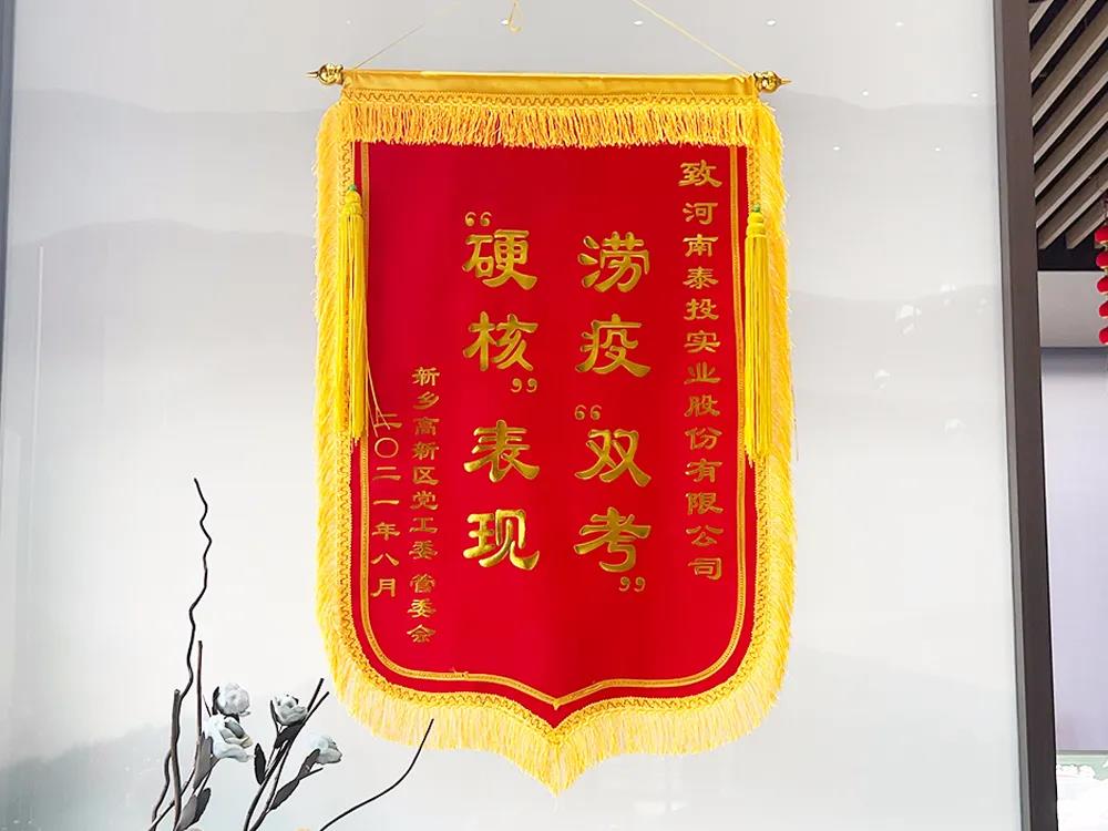8月13日,高新區(qū)管理委員會(huì)副主任田維琳、經(jīng)發(fā)局局長(zhǎng)杜輝、經(jīng)發(fā)局副局長(zhǎng)楊修廣等相關(guān)部門領(lǐng)導(dǎo)將感謝信、錦旗、物資送到泰投科創(chuàng)產(chǎn)業(yè)園,對(duì)泰投科創(chuàng)產(chǎn)業(yè)園在今年7月份新鄉(xiāng)遭遇暴雨、洪澇災(zāi)害后,響應(yīng)政府號(hào)召積極承擔(dān)社會(huì)責(zé)任,免費(fèi)為受災(zāi)民眾及救援隊(duì)提供安置點(diǎn),衛(wèi)生間、淋浴間、餐廳、中央空調(diào)24小時(shí)開(kāi)放,安排工作人員全天候值守,隨時(shí)為群眾解決困難的行為表示感謝。