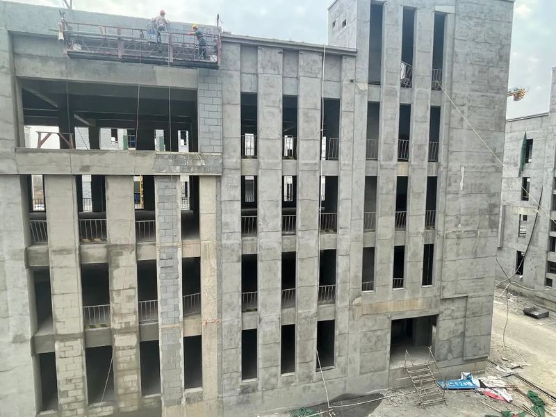 F#樓正在進(jìn)行外墻抹灰及屋面磚鋪設(shè)